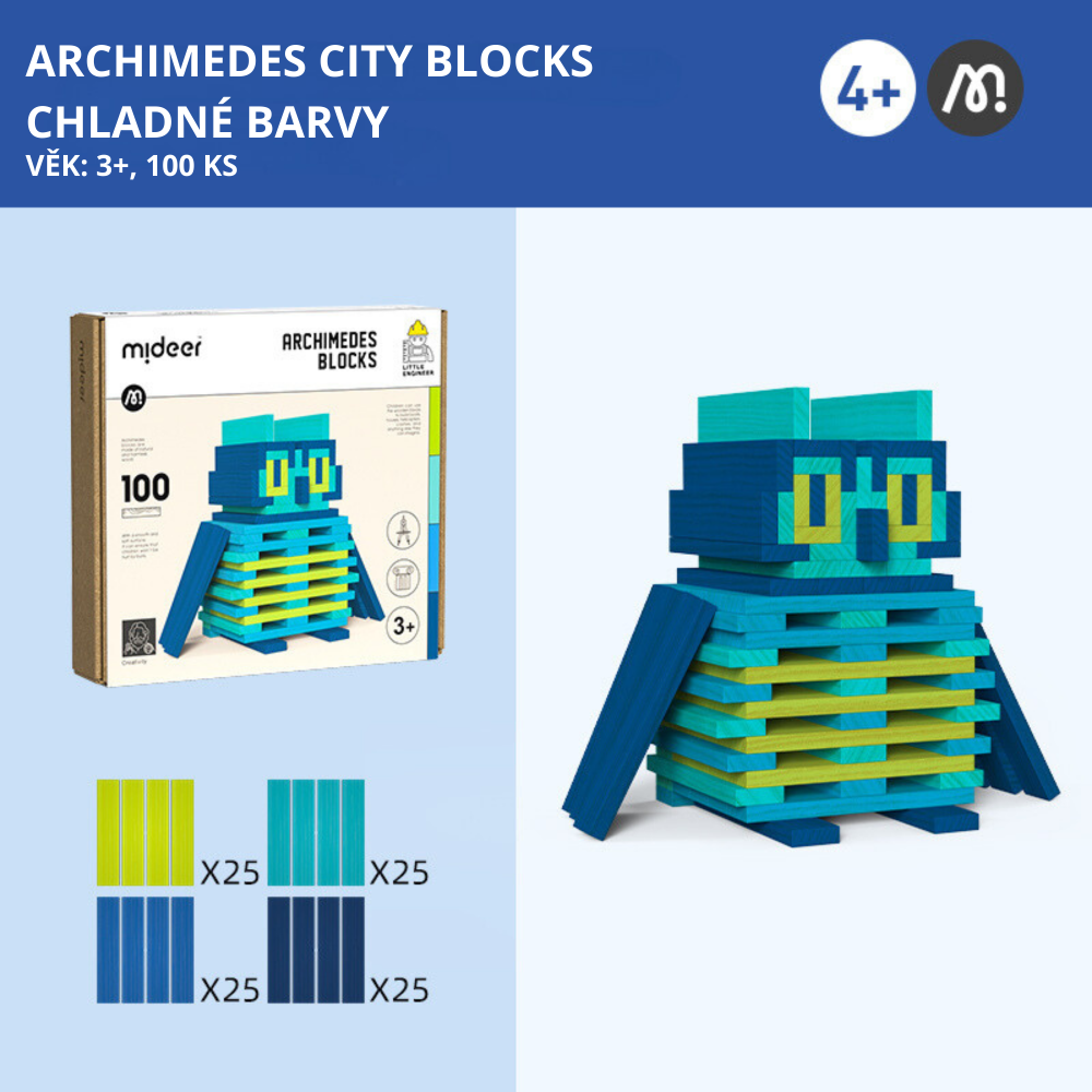Archimedes Blocks is a building game set with natural wood blocks. The Archimedes City Blocks and City Blocks series allow you to build structures from the most basic one-colour to 3D models in multiple colours.