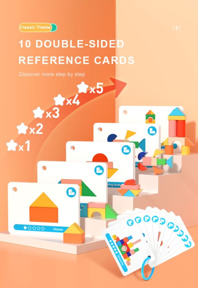 Sada 80 ks obsahuje barevné dřevěné kostky různých geometrických tvarů.