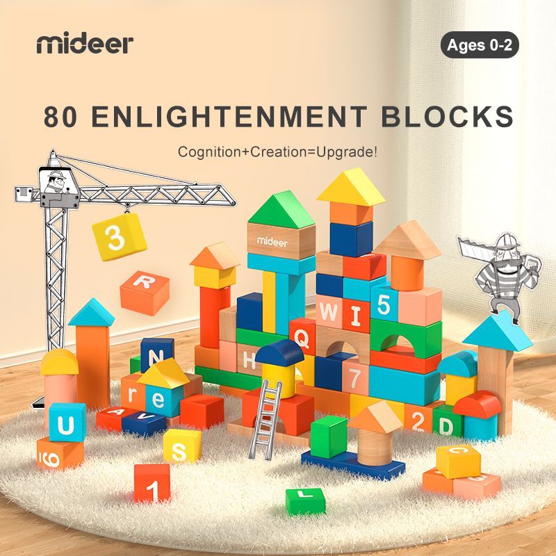 Dřevěná kreativní stavebnice - kostky - 80 dílků