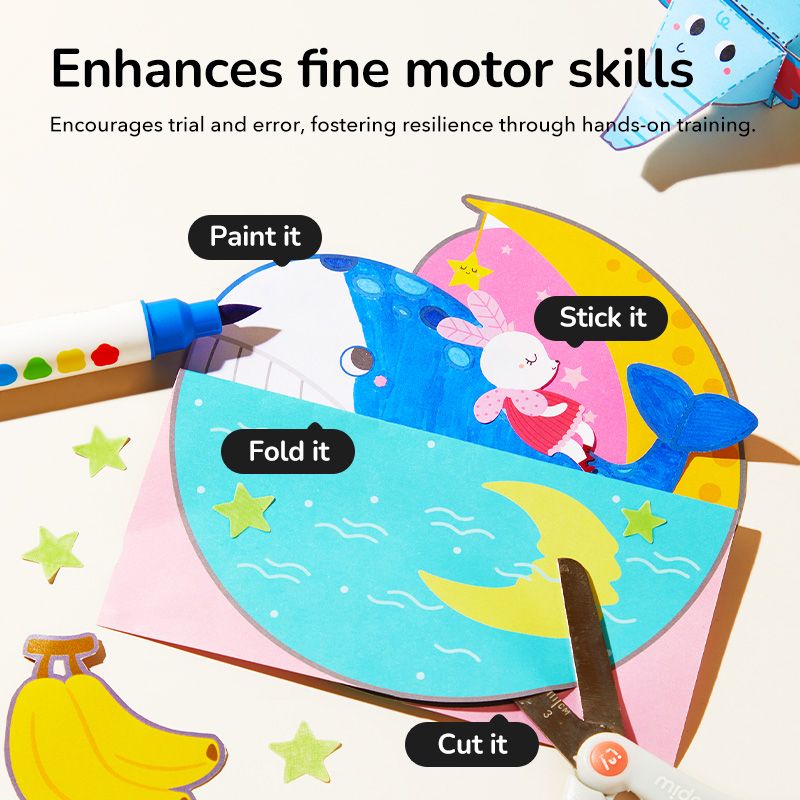 ✂️ Practices cutting, folding, and gluing – ideal preparation for school