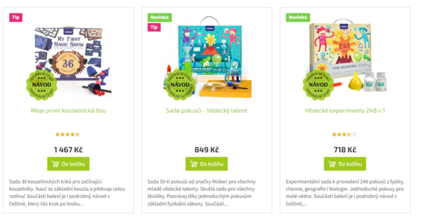 And because we want to be different from our competitors, we started to improve the Mideer brand products. We expanded our product range with products from the categories of scientific experiments, construction kits, etc. We also began working intensively on creating our own Czech/Slovak instructions for products where instructions were appropriate/necessary. I have these instructions printed in colour and then we repackage the products, inserting the instructions into the packaging, marking the box with our own seal and then repackaging the product. This solution sets us apart from other brands in the toy segment.