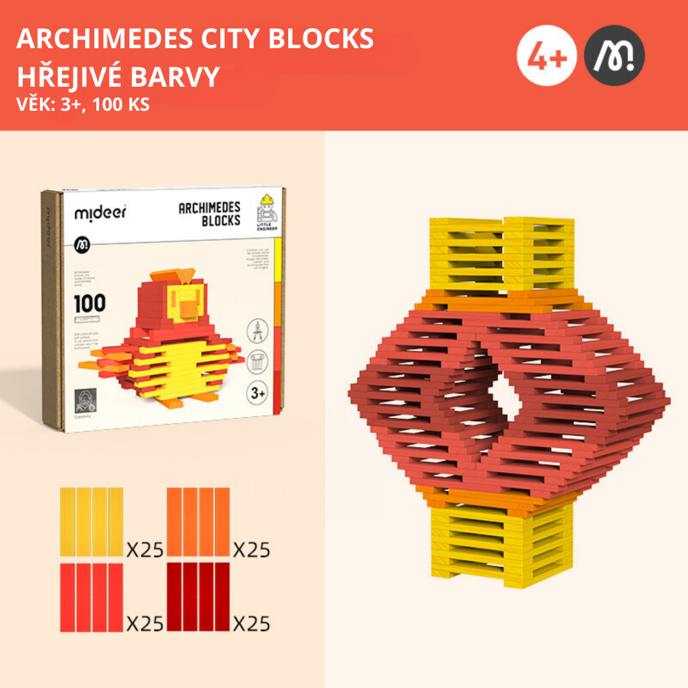 ARCHIMEDES BLOCKS wooden building blocks warm colours 100 pcs