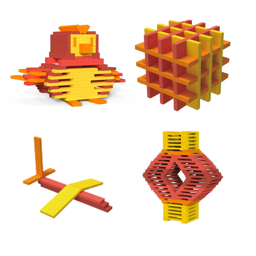 Archimedes Blocks wooden blocks teach children's imagination and shape recognition and improve hand-eye coordination and fine motor skills. The size of the wooden blocks is 117.5 mm x 23.5 mm x 7.8 mm. The cubes are stored in a handy package to prevent them from getting lost.