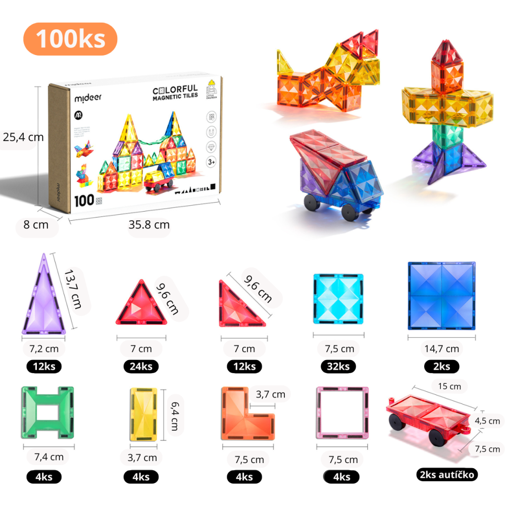 The quality of this set is based on the long-established tradition of Mideer magnetic building sets, which have already gained popularity around the world. In addition, this building set received the maximum possible 5 stars in an independent Testuj to evaluation! And total customers were satisfied with the quality of the building set.