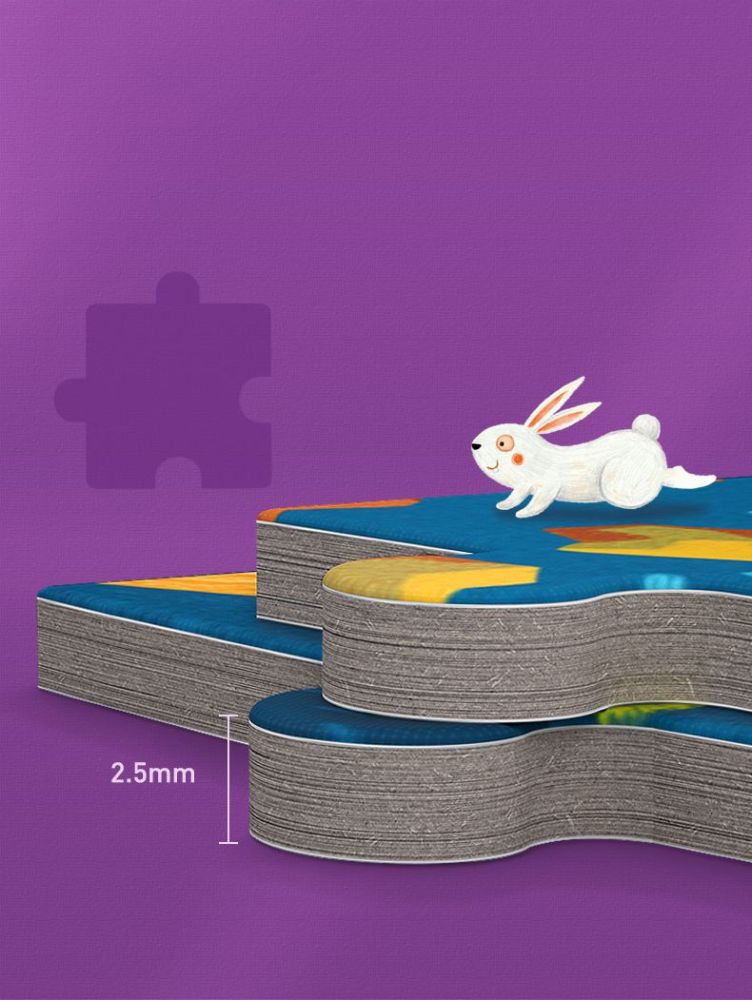 A puzzle az egyes darabok mérete és erőssége miatt ideális gyermekek számára. Kirakva a puzzle mérete 53 cm x 53 cm.