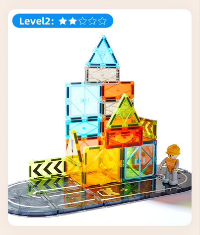 Děti mohou popustit uzdu své fantazii a vytvářet 2D a 3D stavby. Součástí balení je manuál s typy na stavby.