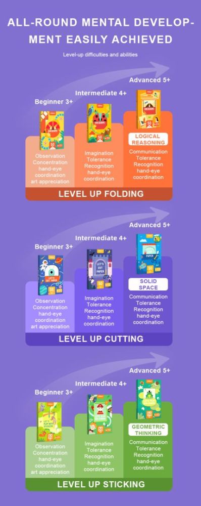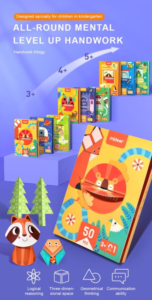 Le coffret LEVEL UP Pliages créatifs de Mideer propose 3 niveaux d’activités, du plus simple au plus avancé.