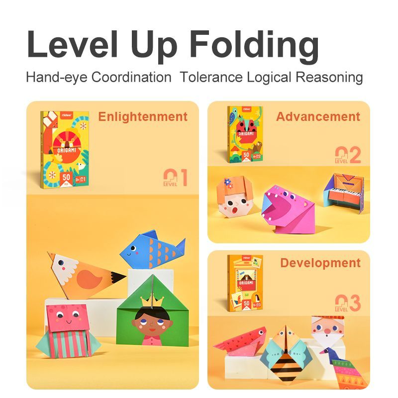 Mideer LEVEL UP Creative Jigsaw Set contains 3 levels of folding from simple to advanced.