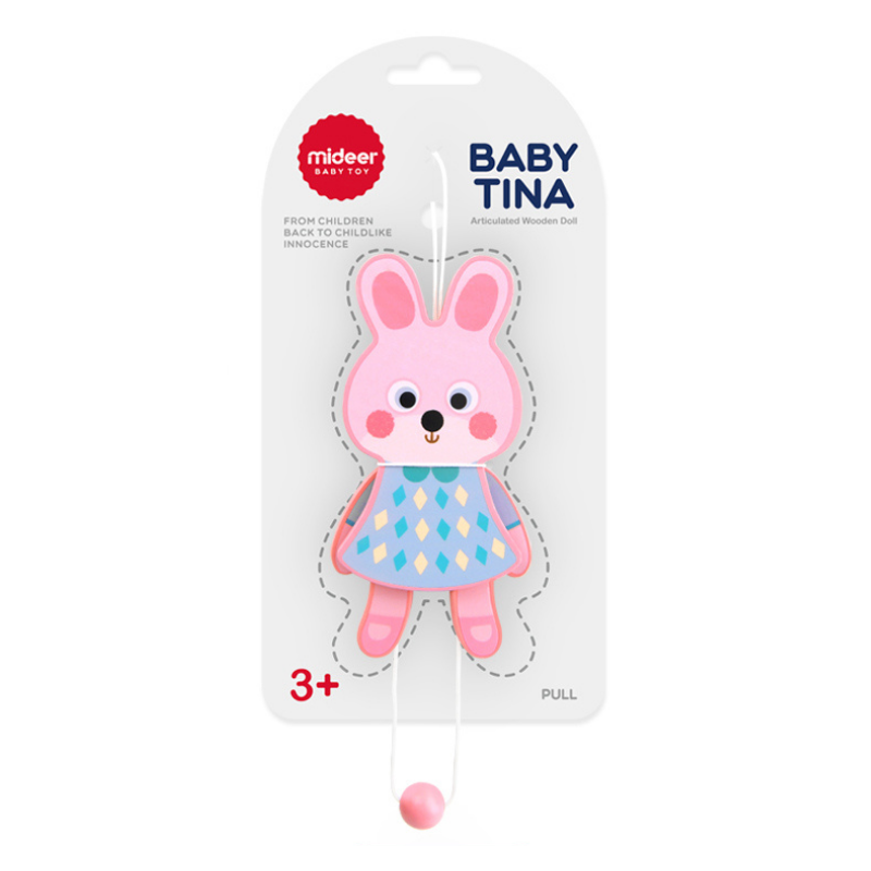 Figúrka Baby Tina je na konci šnúrky vybavená korálkou na pohyb hore a dole.