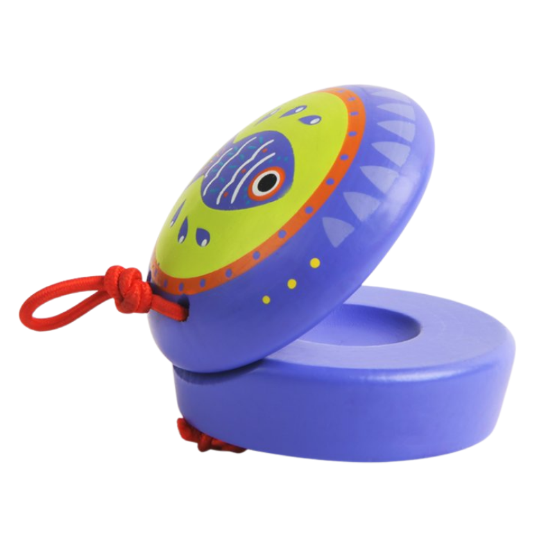 Dřevěné kastaněty ve fialové barvě s rybičkou, zaujmou výraznou barvou i designem.