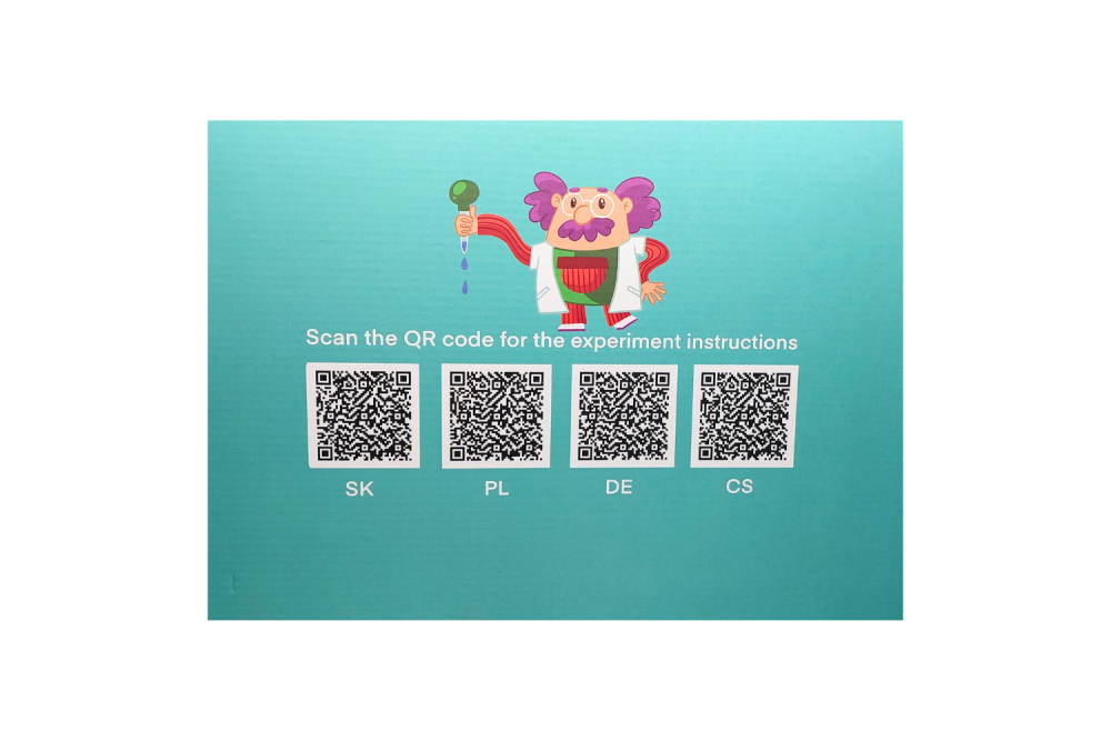 The package includes a QR code with a link to colorful English instructions with descriptions of individual experiments, including pictures.