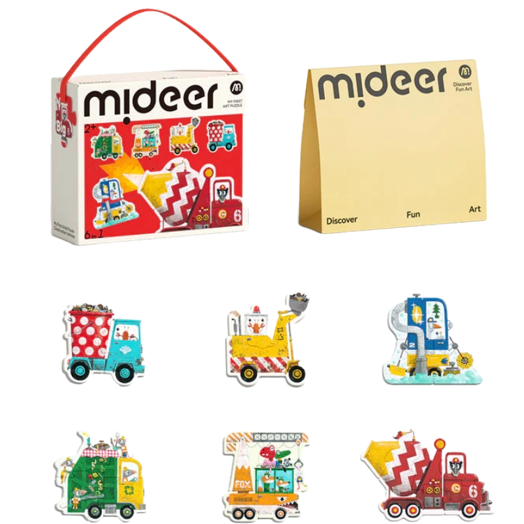 Puzzle obsahuje celkem 6 typů různých dopravních prostředků, které se skládá každé samostatně.