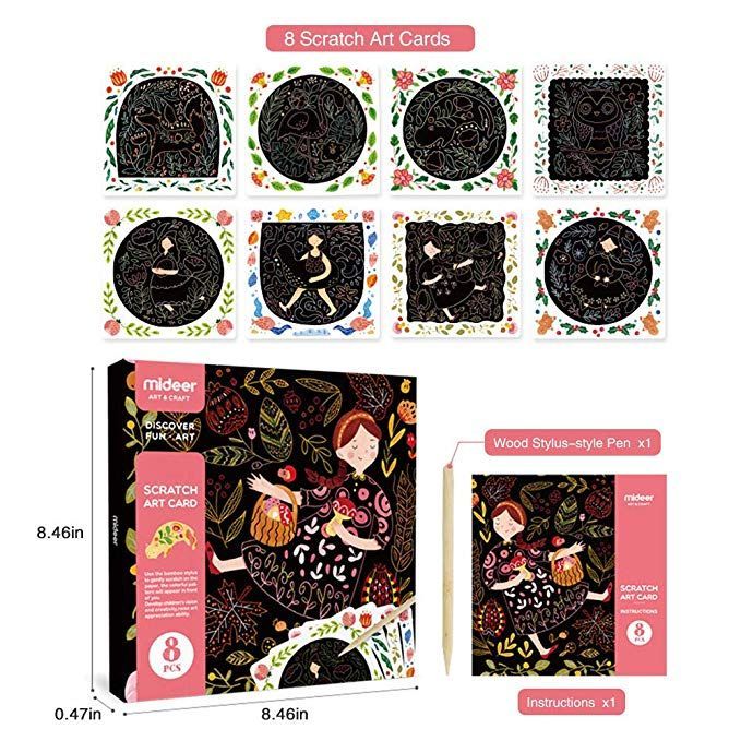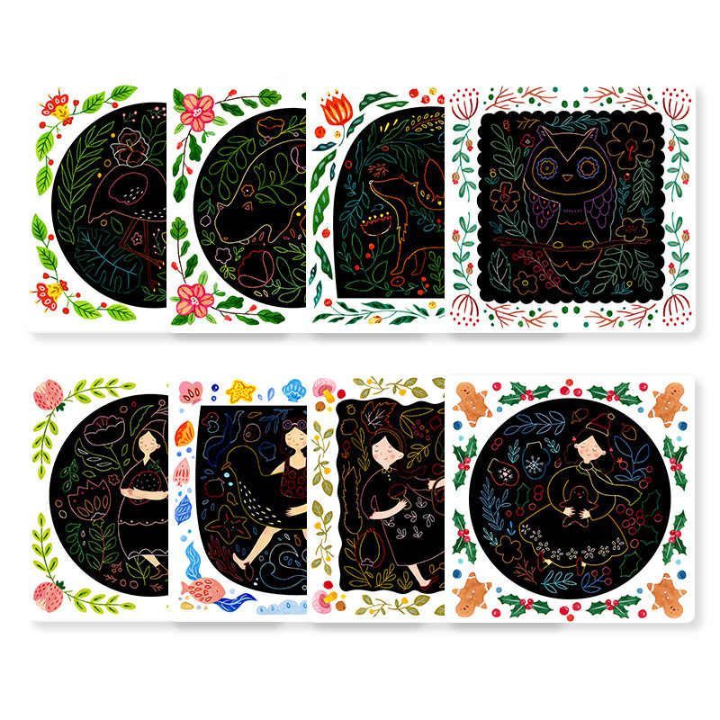 Set obsahuje celkem 8 vyškrabávacích obrazků s motivy zvířátek a děvčat.
