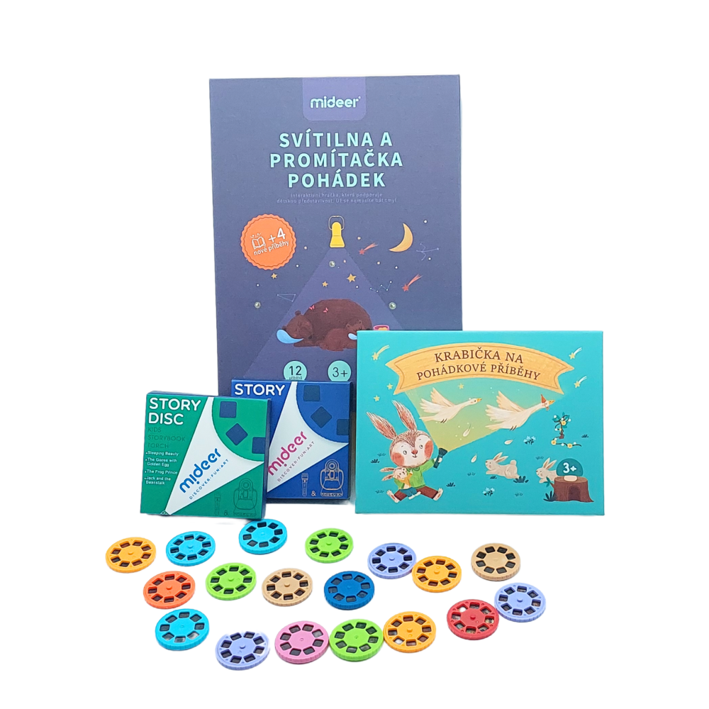 Součástí balení jsou nejen příběhy k jednotlivým pohádkám v češtině, ale i praktická krabička pro uložení jednotlivých kotoučků s pohádkami .
