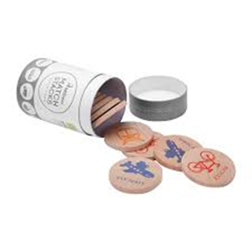 Každý tubus obsahuje 16kulatých dřevěných žetonů s obrázky různých dopravních prostředků.