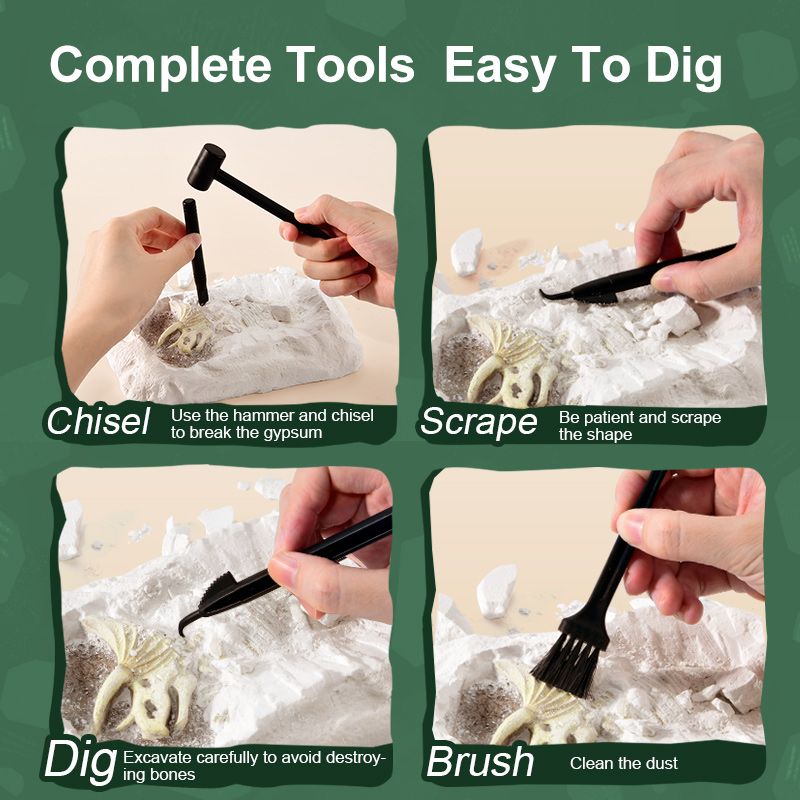 Každý krok vykopávání rozvíjí trpělivost, jemnou motoriku i zvídavost – a navíc přináší spoustu napínavé zábavy! 🌍🦴