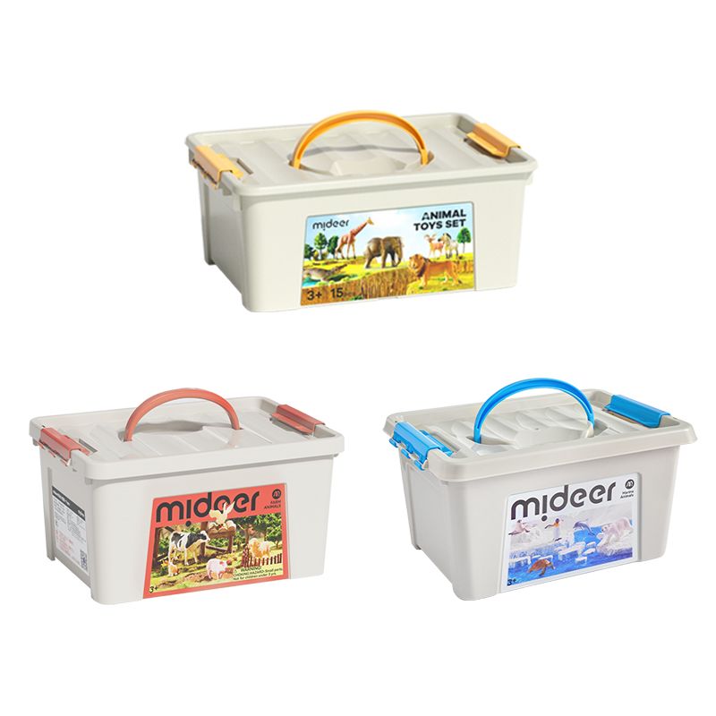 A plastic box with clips and handles will help you to easily tidy up and carry the animals.