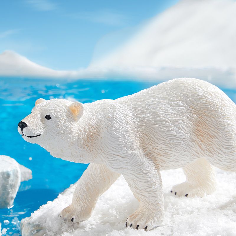 Set of 11 sea animals with polar bear in plastic box for easy carrying.