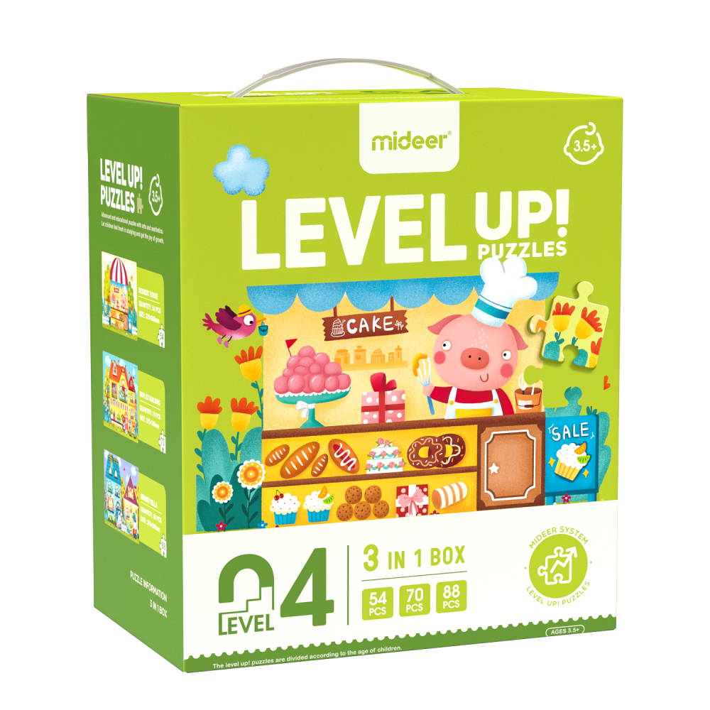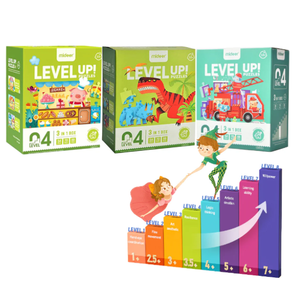 Tato sada puzzle obsahuje celkem 8 stupňů podle vývoje inteligence dětí ve věku 1-8 let, přičemž každý stupeň odpovídá dětem různého věku.