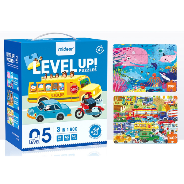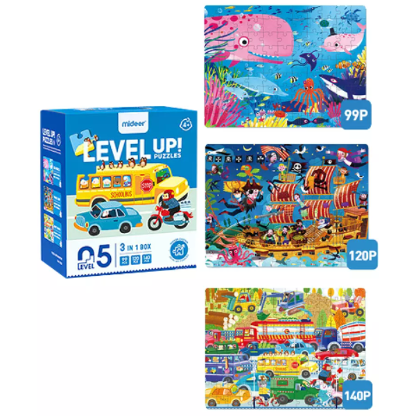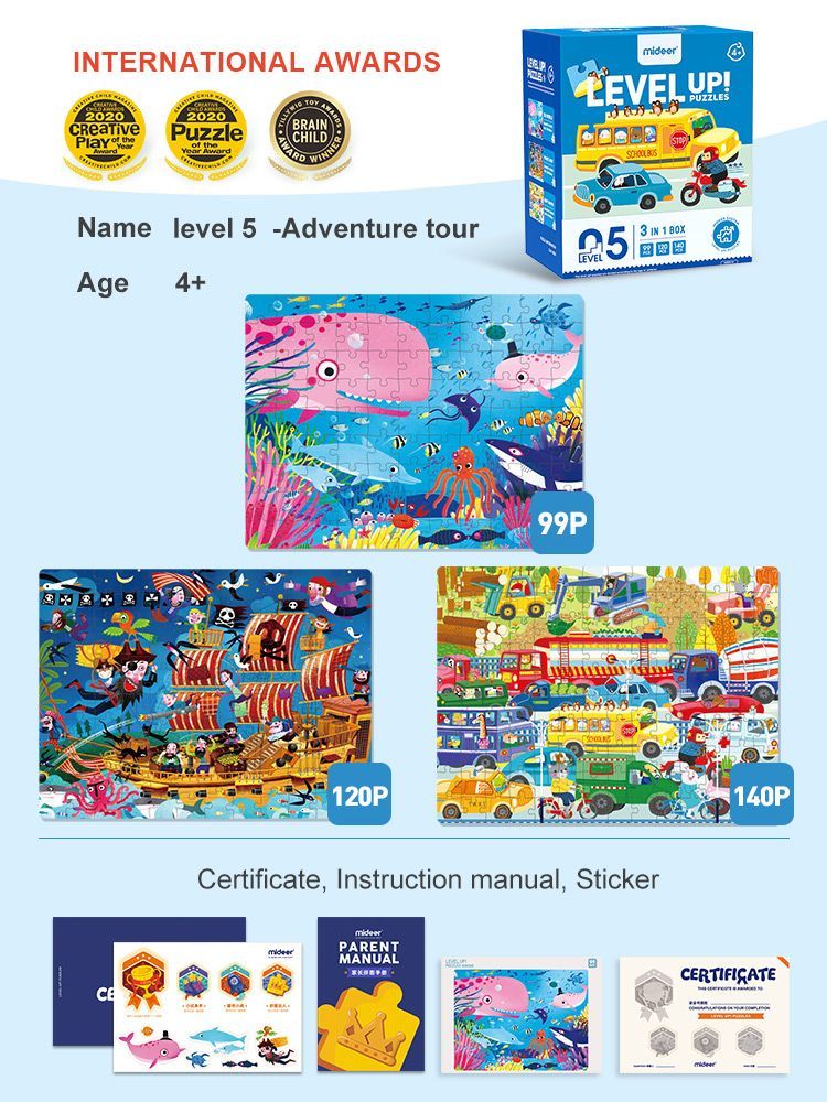 Táto sada puzzle obsahuje celkom 8 úrovní podľa rozvoja inteligencie detí vo veku 1-8 rokov, pričom každá úroveň zodpovedá deťom rôzneho veku.
