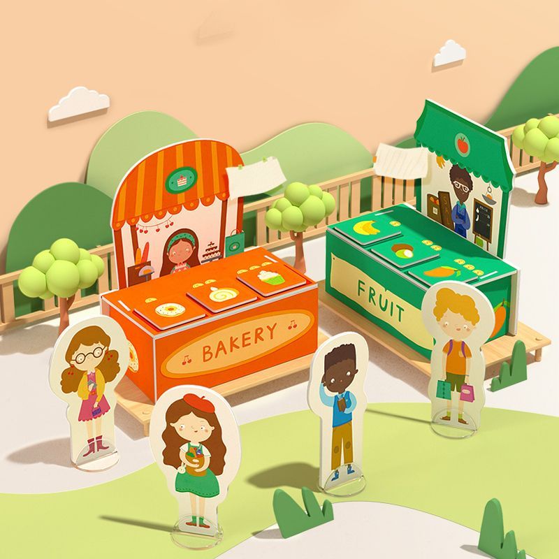 Before the game starts, players set up sales stalls, hand out money, their wallet, shopping lists and the game can begin !