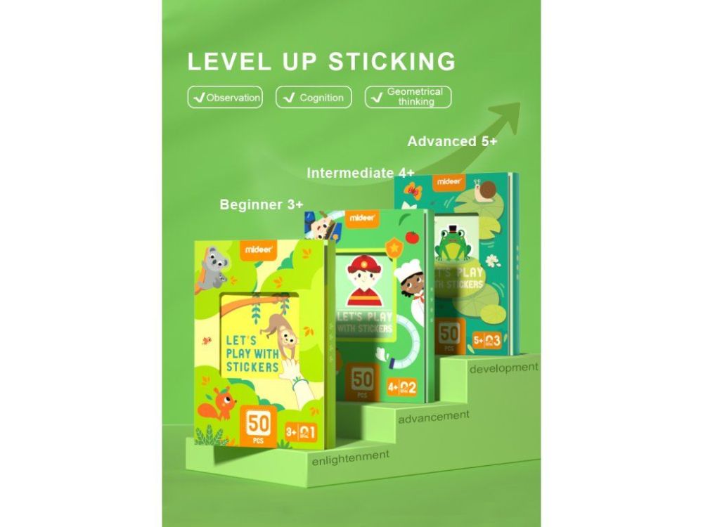 Mideer LEVEL UP Zestaw kreatywnych układanek zawiera 3 poziomy układania od prostego do zaawansowanego.