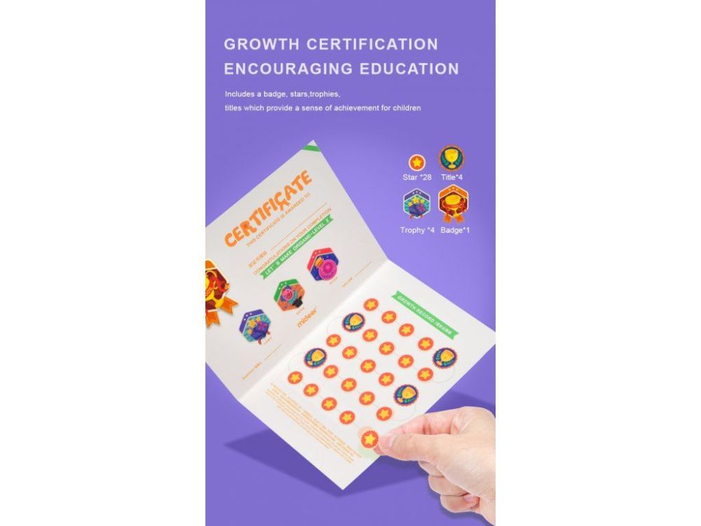 Dołączono również certyfikat, który służy do nagradzania wyników dziecka kolorowymi naklejkami.