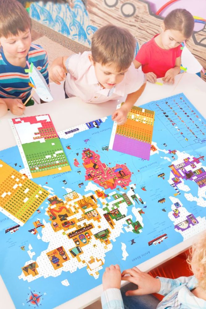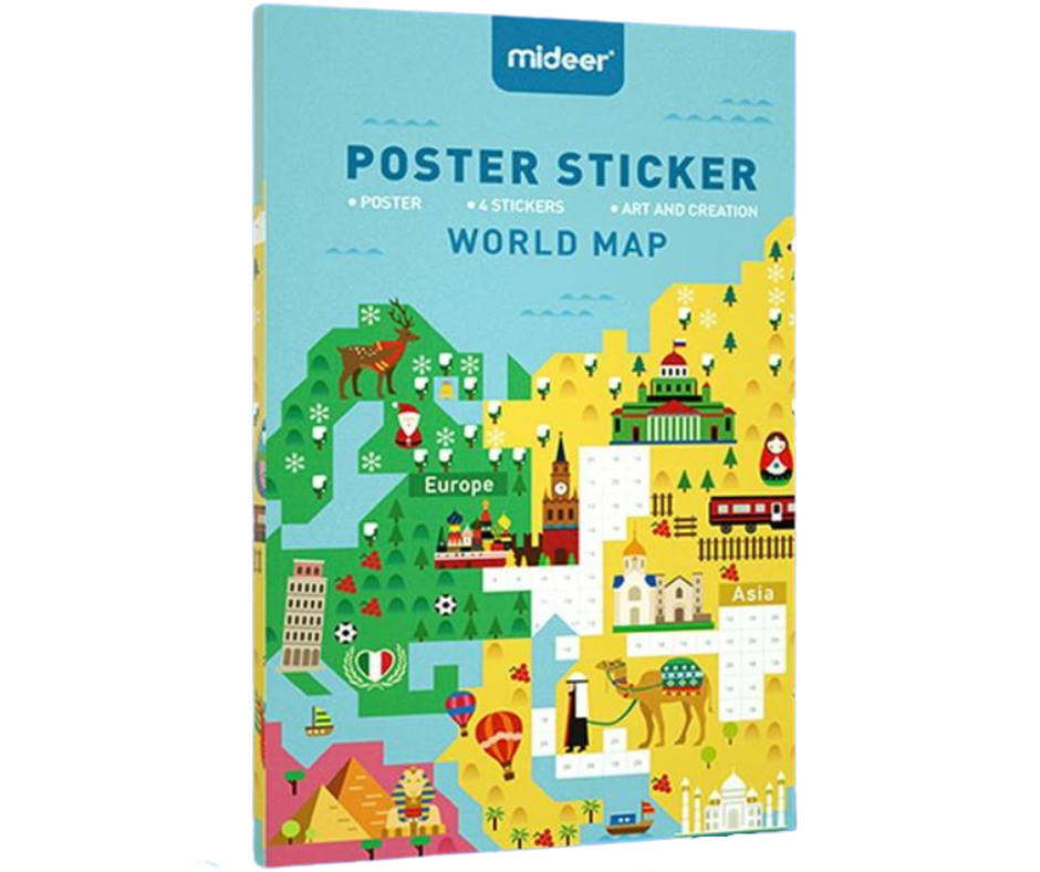 Součástí balení je mapa světa a 4 listy se spoustou samolepek.