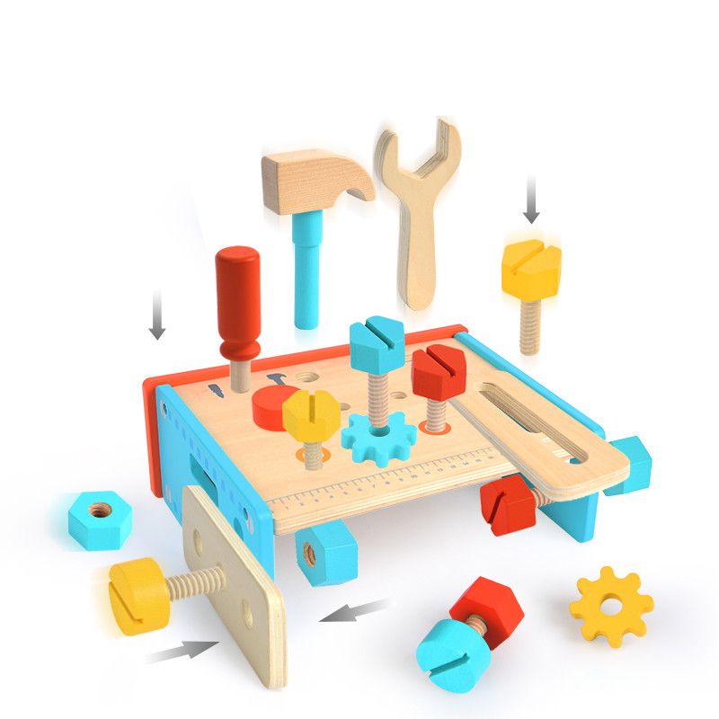 Detský drevený pracovný stôl pre všetkých malých kutilov.