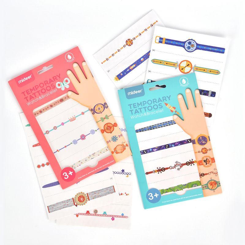 The set includes 10 tattoos in watch design and 10 tattoos in bracelet design.