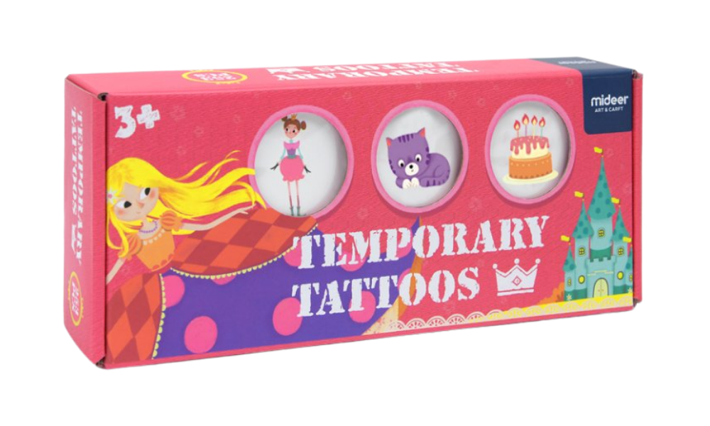 Sada obsahuje tetování a samolepky na nehty s různými tématy, jako je princezna, zvíře, pohádka nebo festival.
