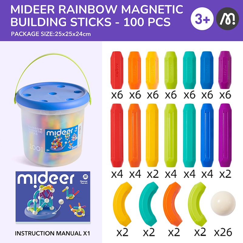 The pieces can be combined with other Mideer magnetic building sets → easy to expand your collection.