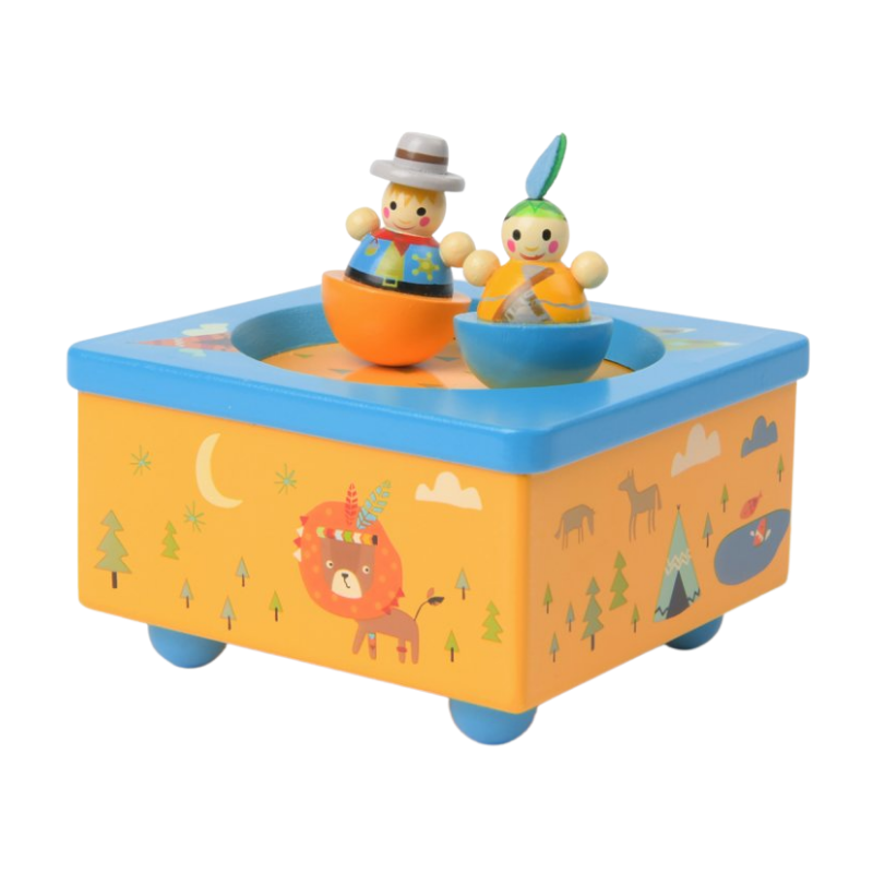 Tato hudební skříňka je dětskou obdobou dříve známých hracích skříněk, které díky mechanickému natažení začali vydávat hudební melodii. Stačí párkrát otočit kličkou ze spodní strany skříňky a můžeš se zaposlouchat do hudby.