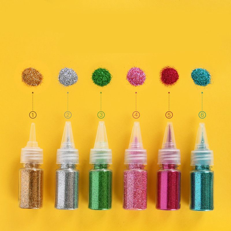 Poslední krok: vsypte přebytečné třpytky pomocí krabičky do nádobky, abyste je mohli později použít.