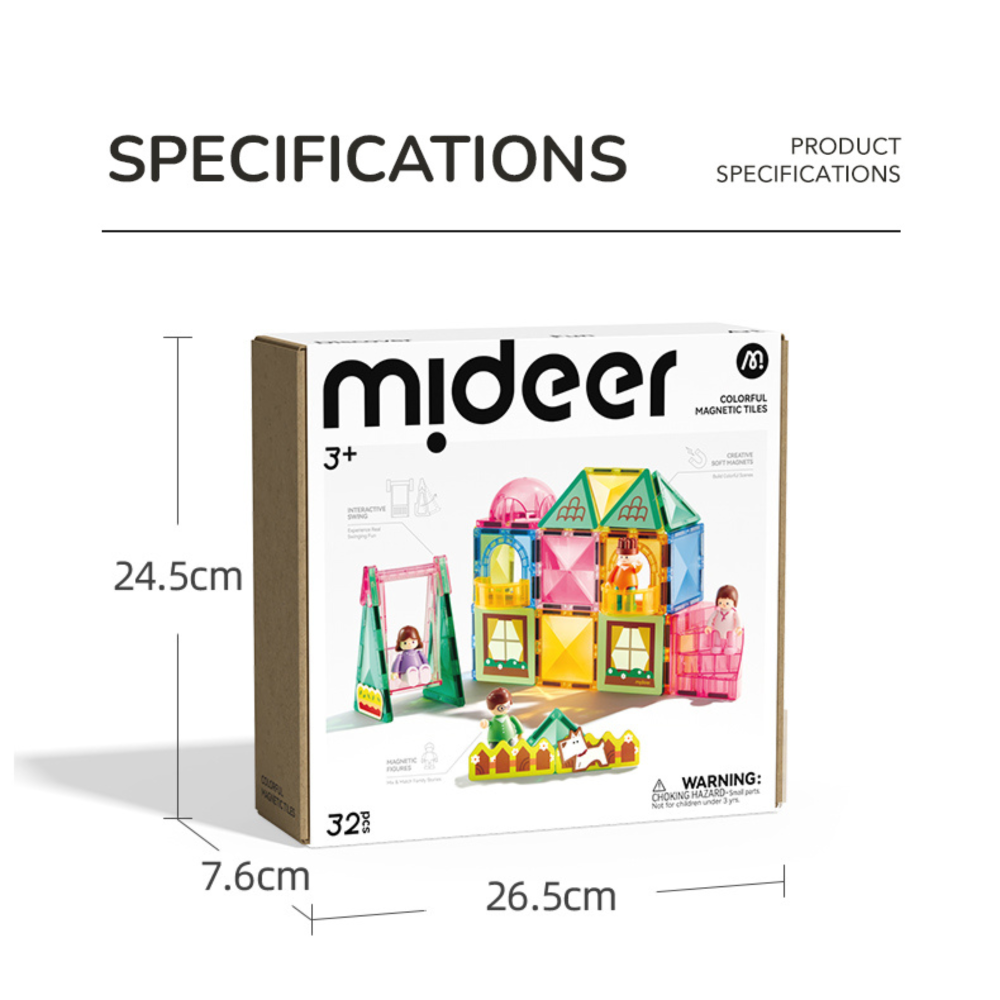 • Compatibility – all pieces can be combined with other Mideer magnetic building sets → easy to expand.