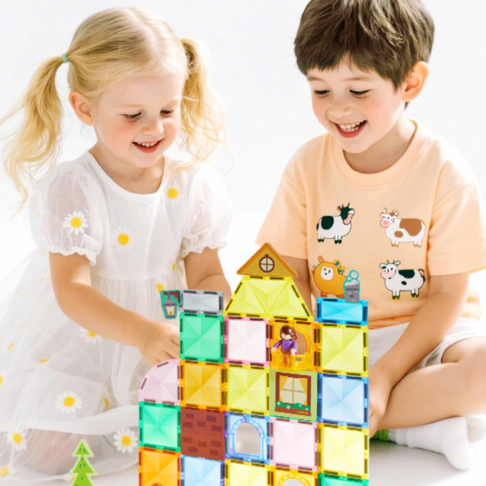 If you are looking for a first set for younger children (3+) who like to combine building with storytelling → we recommend the magnetic building set from Mideer from the My First Magnetic Building Set series.
