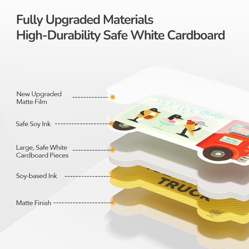Grâce aux pièces en carton extra solides et grandes, le puzzle se monte facilement et convient parfaitement aux petites mains. Les puzzles sont imprimés avec des encres de soja écologiques et ont une surface mate pour une utilisation sûre et confortable.