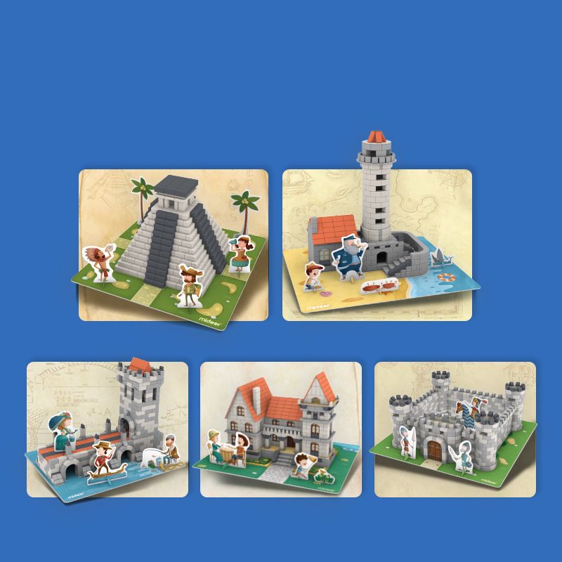 Master Builder Building Set - this creative building set transports children into the world of architecture and history. With the help of mini bricks made from natural materials, they can build famous structures such as the Mayan pyramid, a medieval castle, and other iconic monuments.