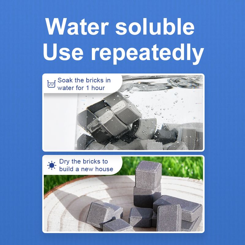 Kids can build as many times as they want thanks to the reusable bricks. Just dip the bricks in water and wait for the glue to dissolve.