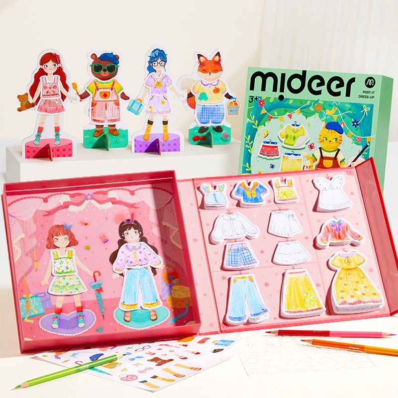 Kreativní sada Mideer Oblékání panenek je zábavná aktivita pro děti, které milují módu, kreslení a samolepky.