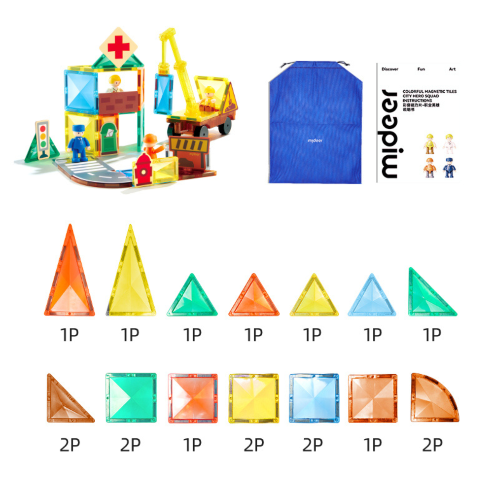 • Compatibility – all pieces can be combined with other Mideer magnetic building sets → easy to expand.