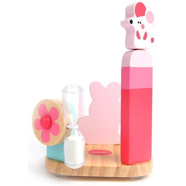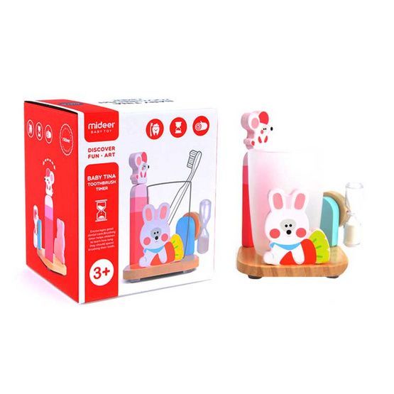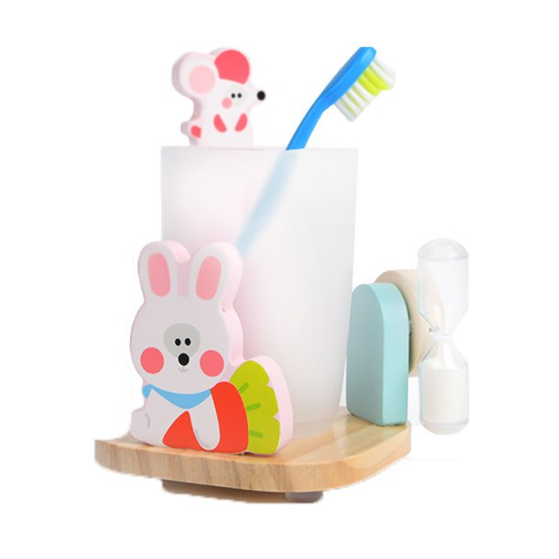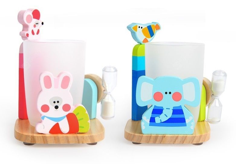 Súčasťou stojana sú aj presýpacie hodiny, pomocou ktorých si deti môžu sledovať, ako dlho si čistili zuby.