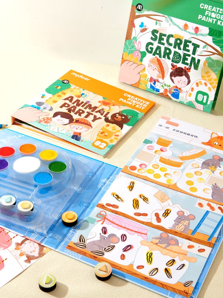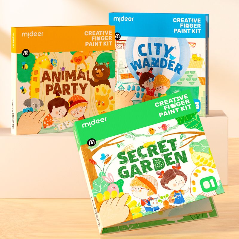 Kreatívna detská sada obsahuje sadu farieb vyrobených špeciálne na maľovanie prstami.