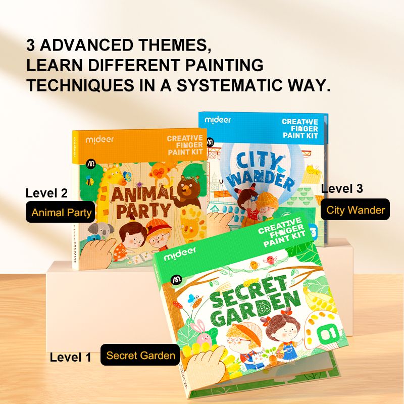 Kreativní dětská sada obsahuje sadu barev vyrobených speciálně pro prstíkové malování.