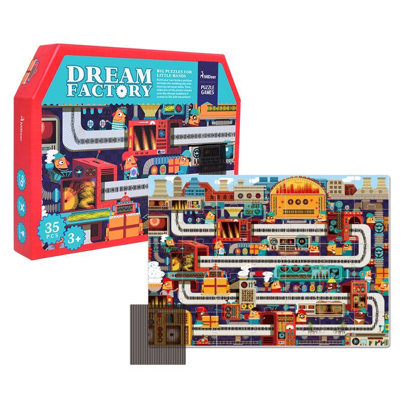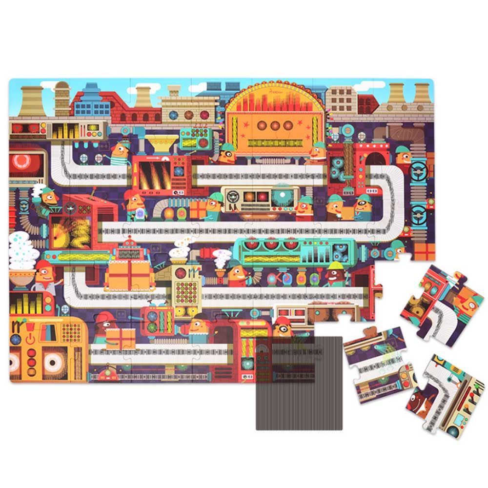 Najprv zostavte puzzle, potom vezmite magnetickú podložku a pásik a rozpohybujte celú továreň!
