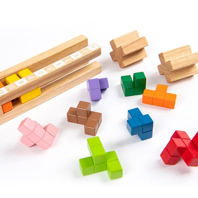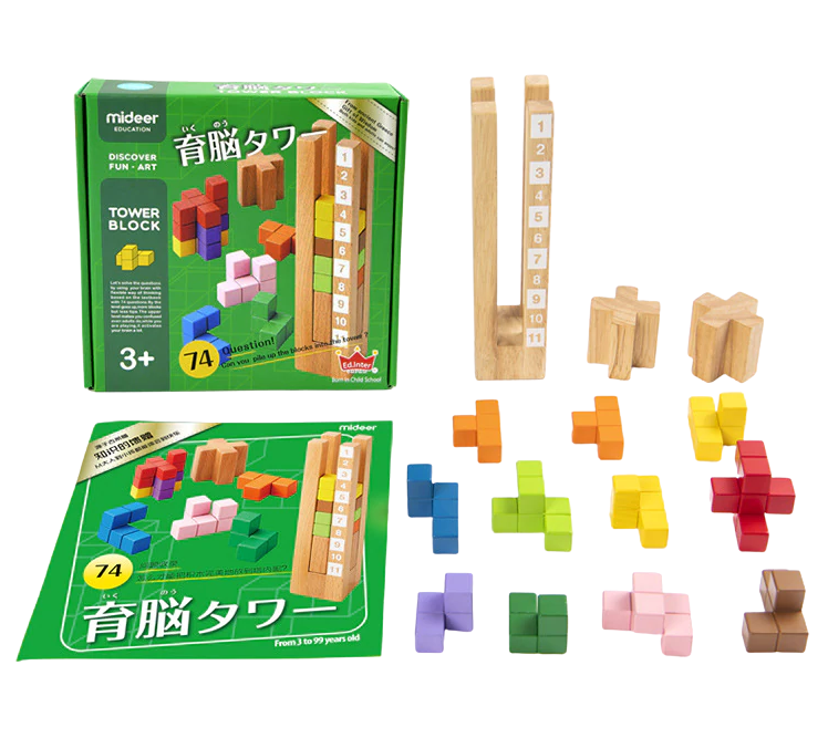 The game contains a total of 11 coloured blocks from which a total of 74 tower variants can be built.