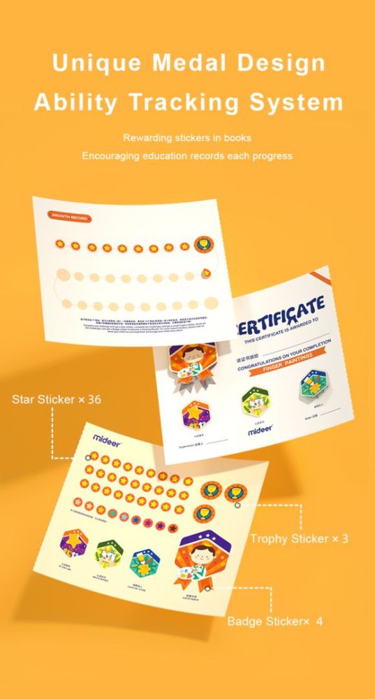 Všetky aktivity maľovania prstami sú usporiadané podľa úrovní zložitosti a sú primerané veku každého dieťaťa.