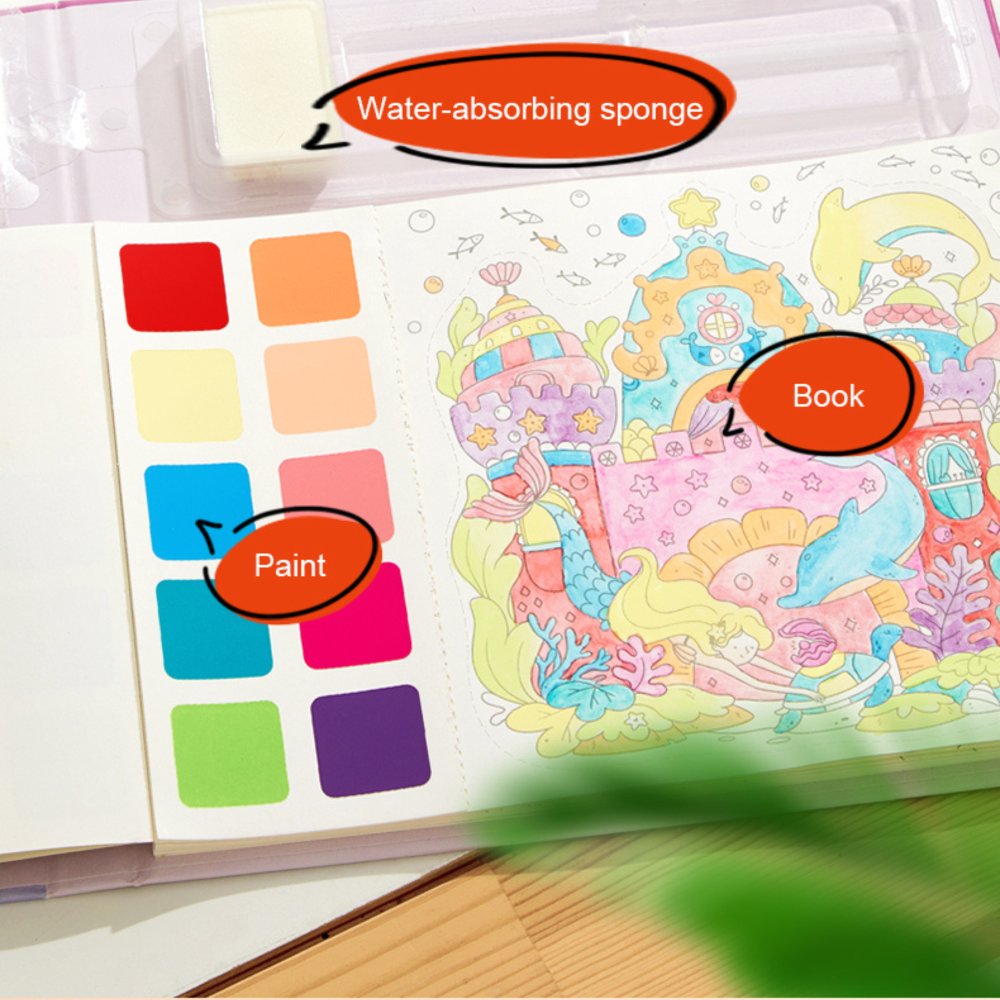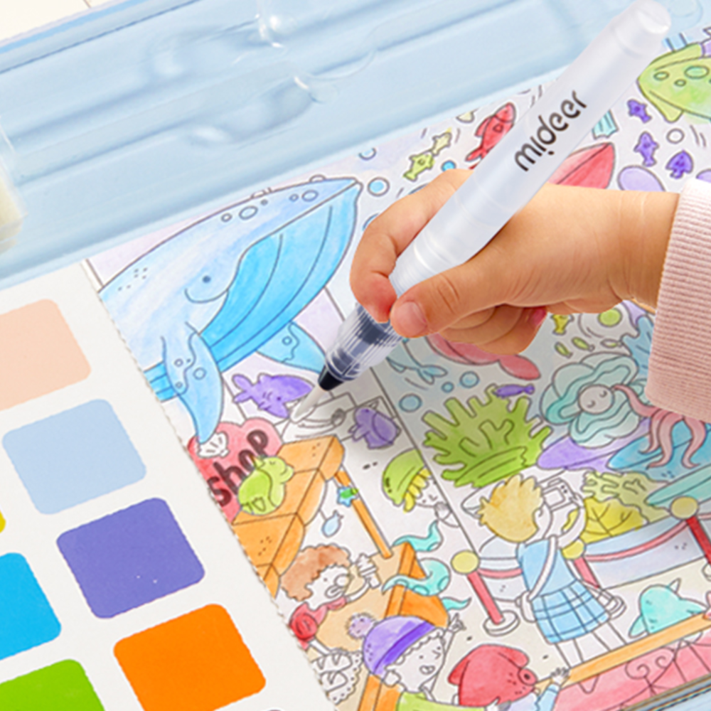 Výhodou tejto knihy je aj praktické uloženie pera a hubky späť, takže budete mať celú sadu vždy pohromade. Hodí sa nielen na maľovanie doma, ale aj na cesty.