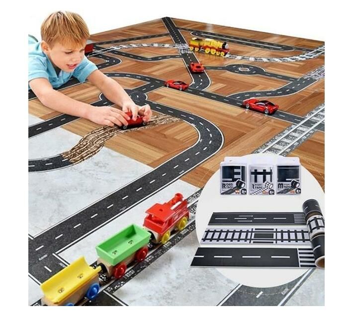 Stačí si vzít samolepku a můžeš si na zemi vytvořit vlastní dopravu dle libosti.